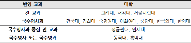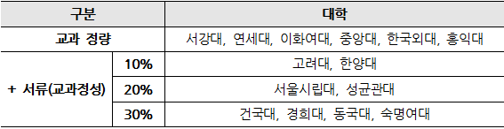 [표] 주요 대학 교과 전형 정량평가 영역 반영 교과