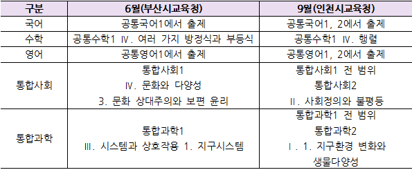 2025년 6월&9월 학력평가 출제범위